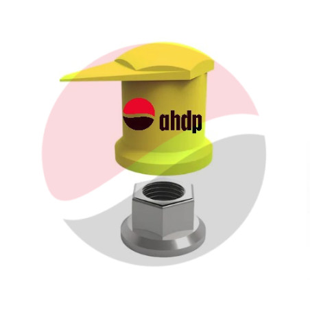 COMBINES A LOOSE NUT INDICATOR AND A NUT DUST CAP FOR PROTECT NUTS AND BOLTS.